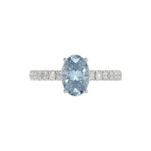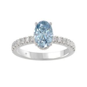 14K WHITE GOLD 2 1/2CT ROUND/OVAL DIAMOND LADIES RING (CENTER STONE BLUE OVAL DIAMOND 2CT)