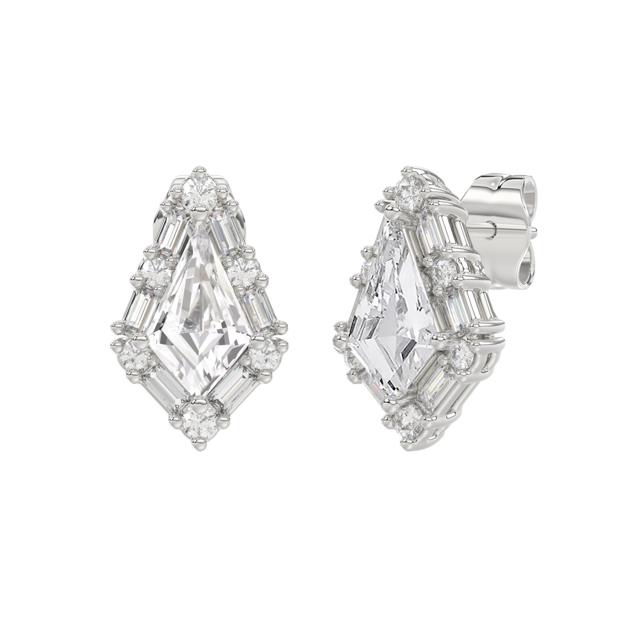 14K WHITE GOLD 1 1/4CT ROUND/BAGUETTE/KITE DIAMOND LADIES EARRINGS