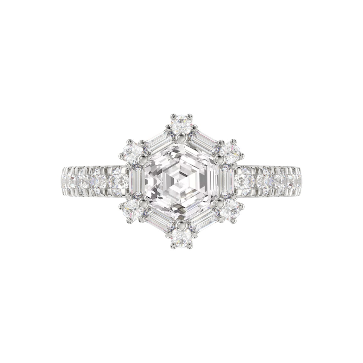 14K WHITE GOLD 1 3/4CT ROUND/BAGUETTE/HEZAGON STEP CUT DIAMOND LADIES RING