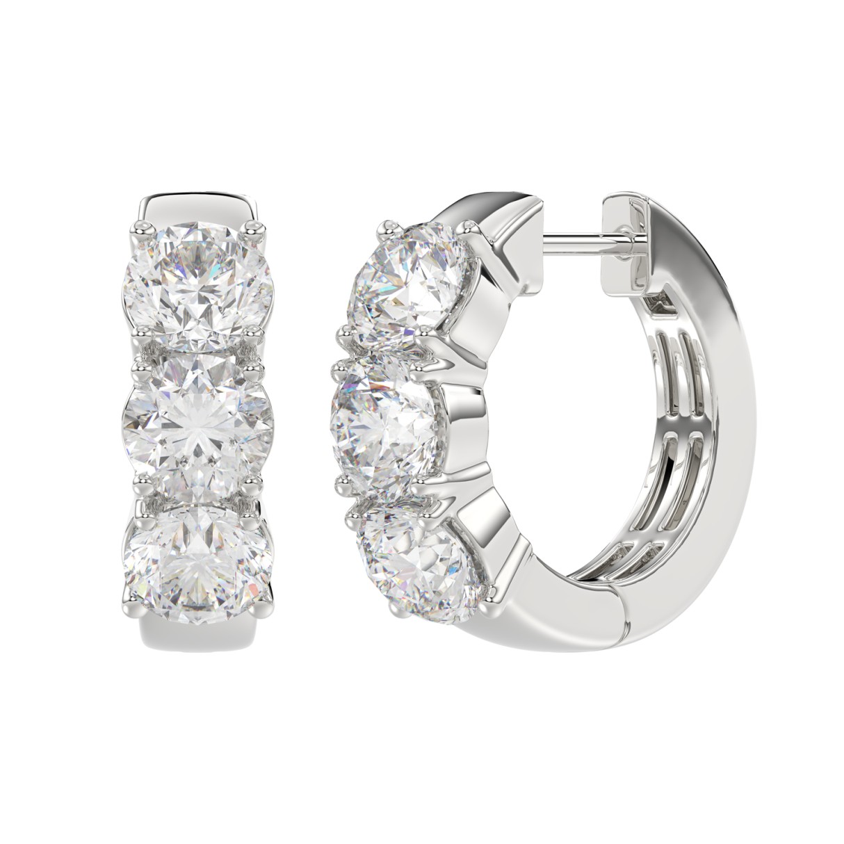 14K WHITE GOLD 3.00CT ROUND DIAMOND LADIES HOOP EARRINGS