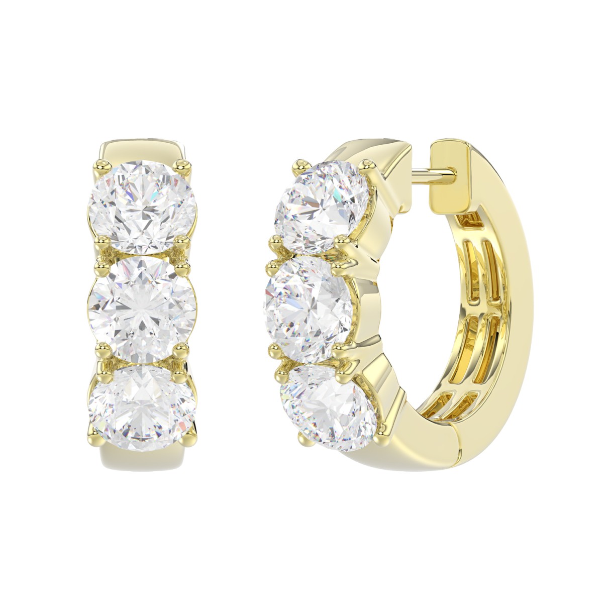14K YELLOW GOLD 3.00CT ROUND DIAMOND HOOP EARRINGS