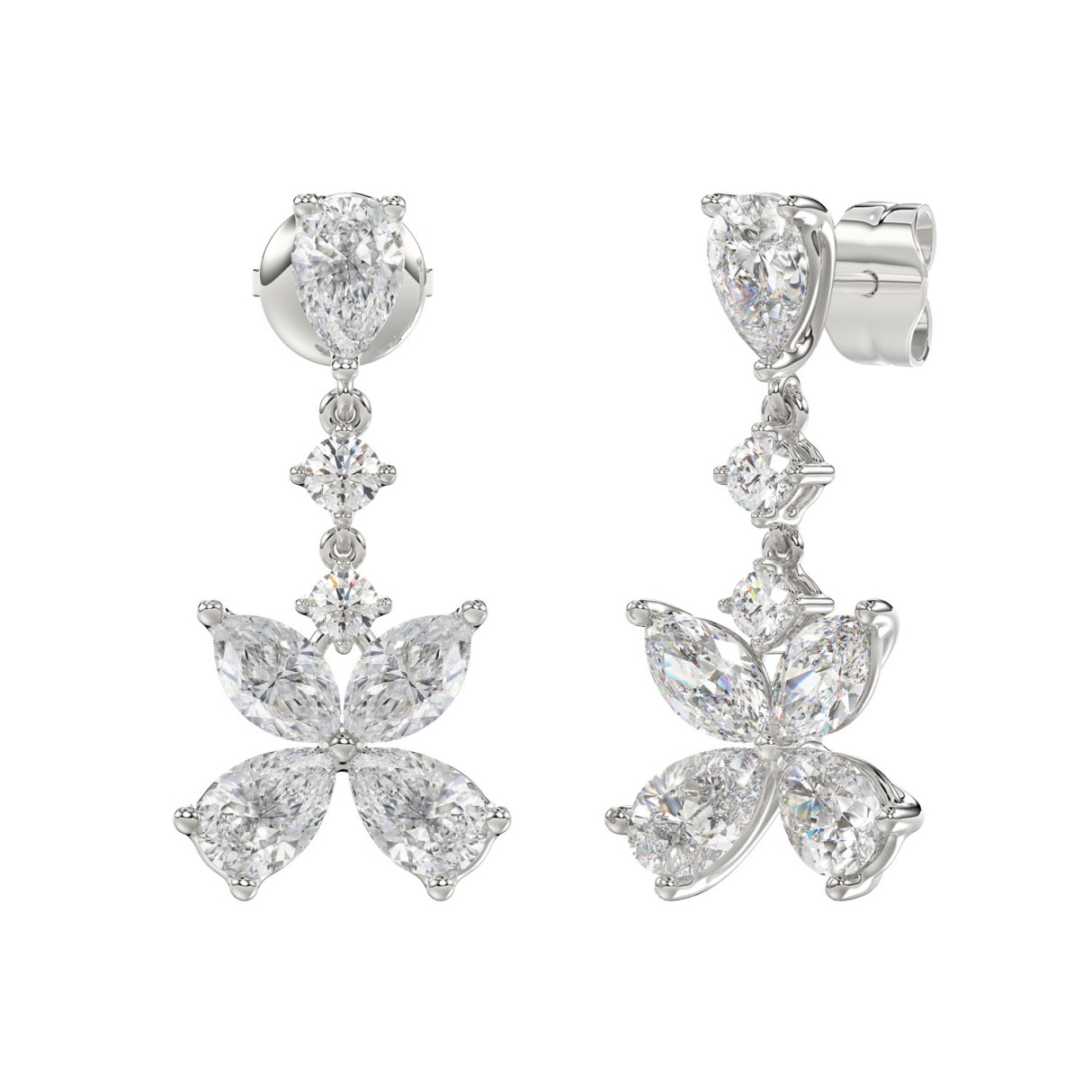LADIES EARRINGS 3CT ROUND/MARQUISE/PEAR DIAMOND 14K WHITE GOLD