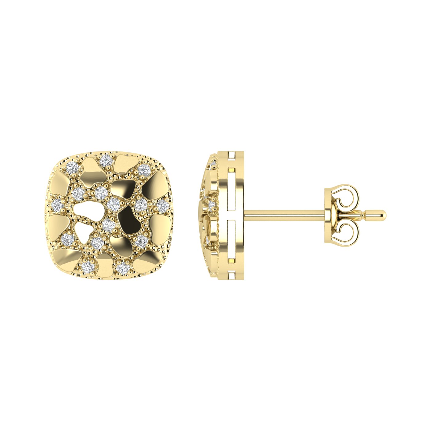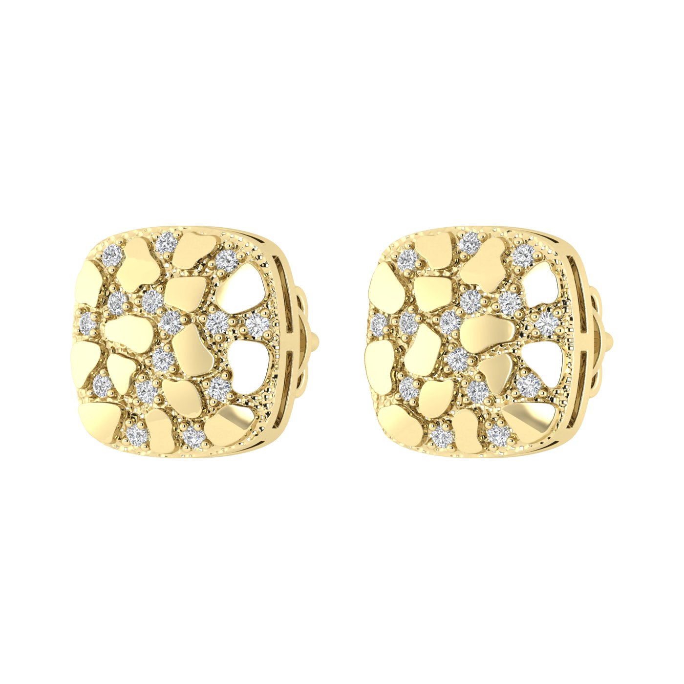 “Ladies Nugget-Fashion Earrings 0.15Ct Round Diamond 10K Yellow Gold – Elegant Women’S Fashion Jewelry Gift