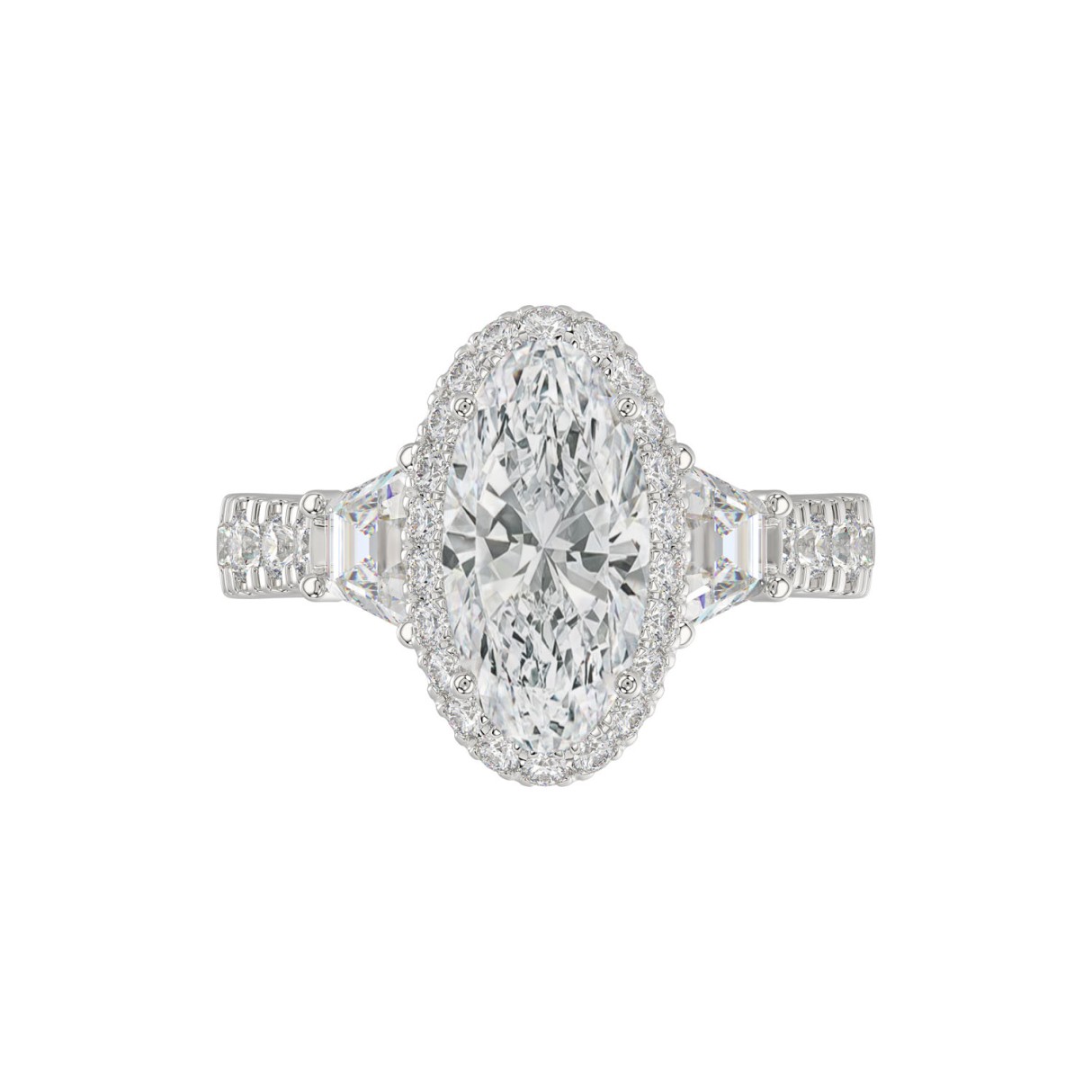 LADIES RING 3.25CT ROUND/OVAL/TRAPEZOID/BAGUETTE DIAMOND WHITE PLATINUM (CENTER STONE OVAL DIAMOND 2CT)
