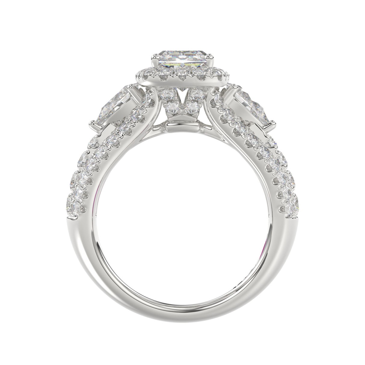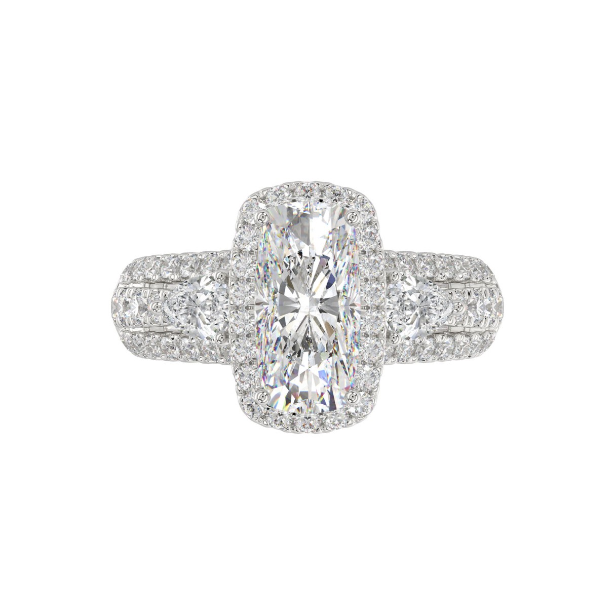 LADIES RING 3.50CT ROUND DIAMOND PEAR/CUSHION/BAGUETTE DIAMOND WHITE PLATINUM (CENTER STONE CUSHION DIAMOND 2CT)