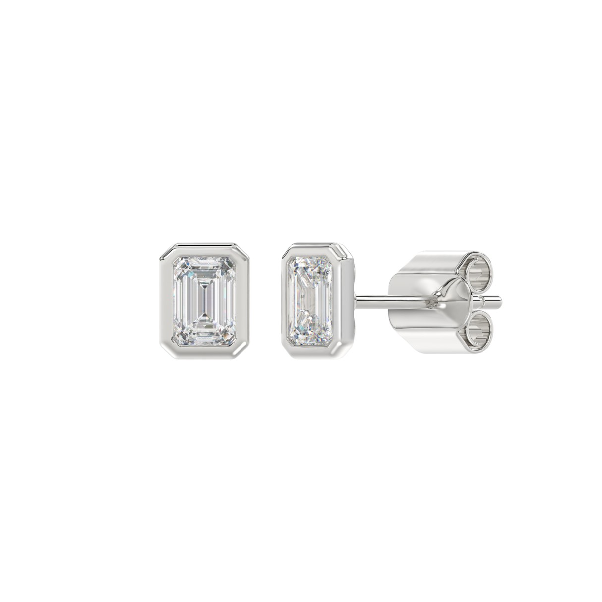 LADIES SOLITAIRE EARRINGS 1CT EMERALD DIAMOND 14K WHITE GOLD