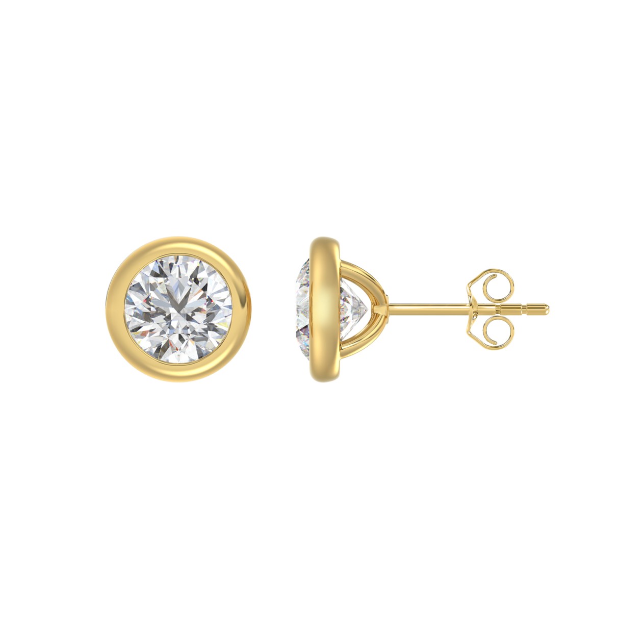 LADIES SOLITAIRE EARRINGS 3CT ROUND DIAMOND 14K YELLOW GOLD